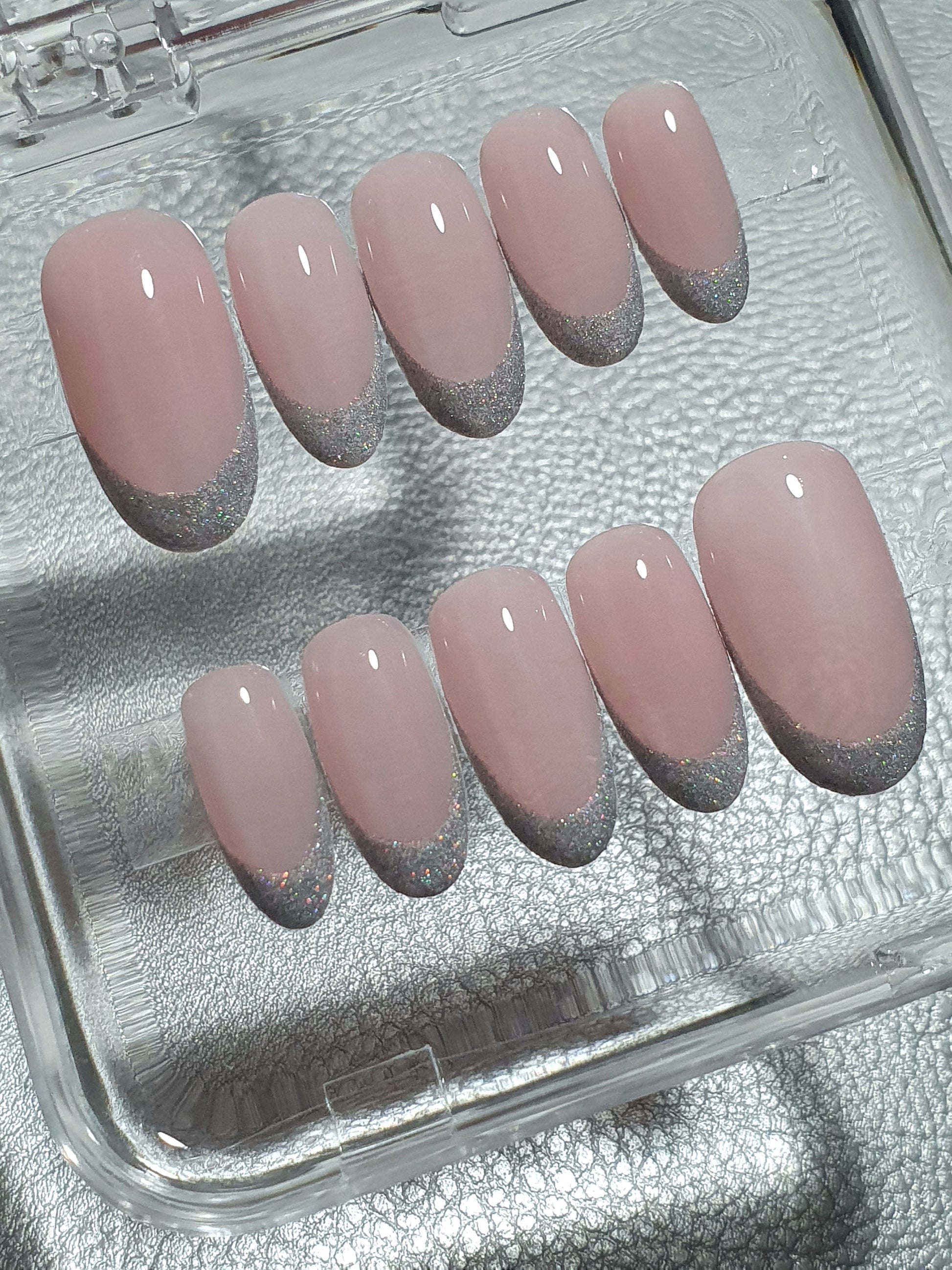 Medium oval holographic french press on nails set