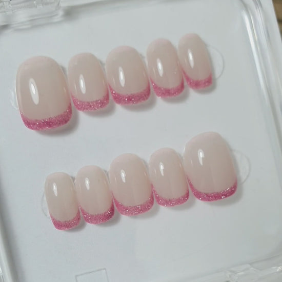 Shimmering Pink French Tips Nails